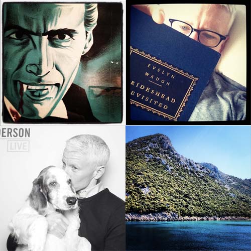 (Clockwise from top left) Off duty, Anderson Cooper likes looking at art. He collects hand-painted movie posters from various parts of the world.